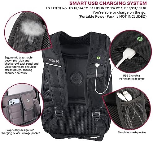 Swissdigital Design Terabyte TSA Laptop Backpack Men’s USB Charging Port Large Capacity Business Travel Backpack Black(J16BTFB-41)| With Apple Find My Network